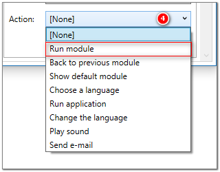 Step 4 In the right panel choose Run module from the dropdown list Action